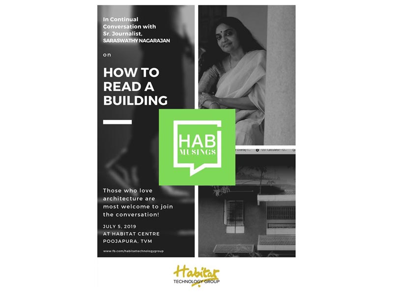 Senior Journalist, Saraswathy Nagaraj made a short stroll from her world of letters to the world of bricks. Together we set off the conversation on "How to read a building". Before we just go by the beautiful home pictures from some other part of the world and say "I want this", we must see what is around us and see if it goes well with our lansdcape, weather and needs. In a home in Europe, where we get very little sun, we may enjoy a west-facing room to catch the sun, where as in our state, we will find it too hot and sunny.