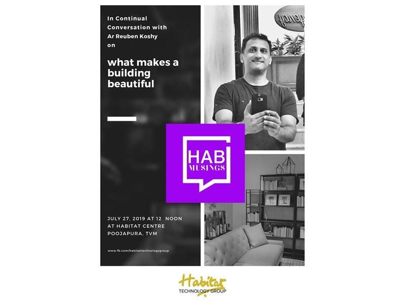 The speaker of the fifth session of Hab Musing was Architect Reuben Koshy. He sets off the conversation on “What makes a beautiful building”. It was like an interactive session between the speaker and the listeners. In the session, he shared his thoughts, throws more ideas as well as listens to what ‘People’s Architect’ had to say.