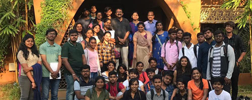 A 60-student batch from SJB School of Architecture & Planning, Bangalore came to Habitat Centre for a day's seminar and training on sustainable technologies and also visited "Siddhartha" to meet and interact with the legendary architect G Shankar.