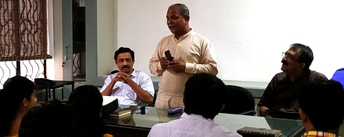 National Organizing Secretary of Vijnana Bharathi, Shri. Jayant Sahasrabuddhe addressing the Architects & Engineers in Habitat Technology Group on the relevance of "Sir Patrick Geddes" planning in Contemporary Indian Design scene at Habitat Trivandrum today.