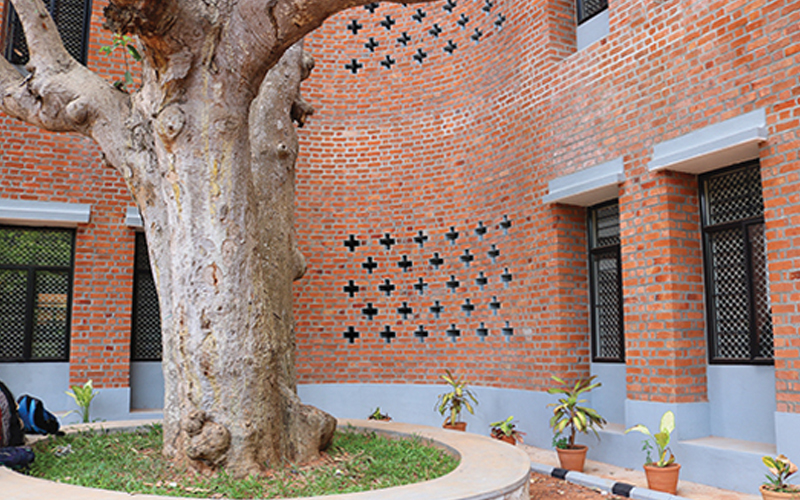 One of the oldest college libraries in Kerala (estd. in 1897) with more than 93,500 books, the Central Library got this newly constructed by Habitat. Inaugurated in February 2017, the four-storied new building is situated at the centre of the campus in Vazhuthacaud, Trivandrum, Kerala.