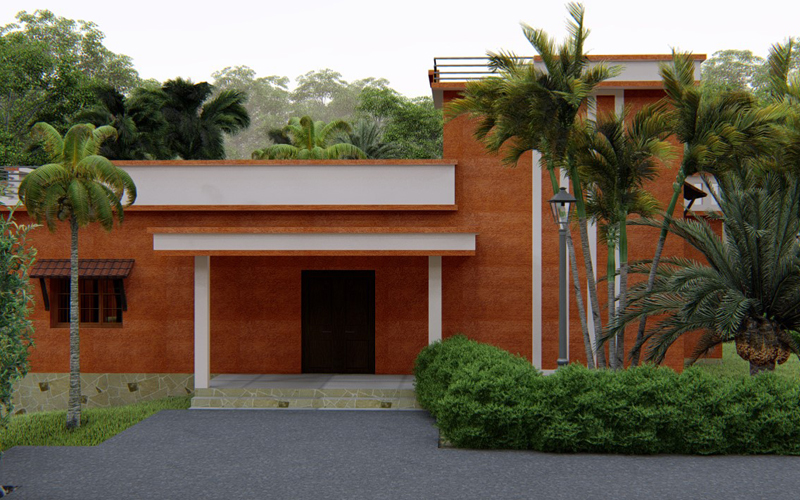 3BHK Waterfront House, Punalur