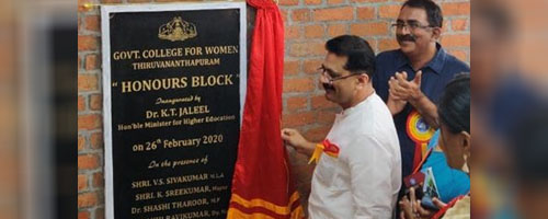The "Honours Block" of Govt College for Women, Thiruvananthapuram was inaugurated on 26 February by Dr. K T Jaleel, Hon'ble Minister for Higher Education in the presence of Dr. G Shankar, academic/non-academic staff of the college and also the students.